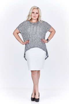 Sukienka FSU620 EKRI + CZARNY pepitka
