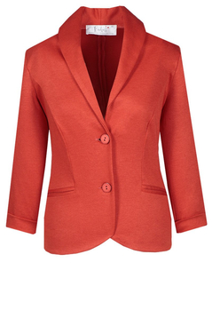 Żakiet dzianinowy, z dekoracyjnym szalowym kołnierzem. Na przodzie cięcia francuskie, oraz kieszonki podkreślone wypustkami. Zapinany na 2 guziki. Dół zaokrąglony. Rękaw wywijany 3/4 .Z tyłu zaszewki. Bez podszewki. Uniwersalny, świetnie łączy się z innymi częściami garderoby, np. z jeansami, tworząc udane zestawy, w których każda kobieta będzie wyglądać modnie i atrakcyjnie. Bez wahania można go założyć na co dzień np. do pracy czy spotkanie z przyjaciółmi, jak i na bardziej uroczyste okazje.
