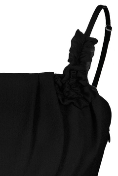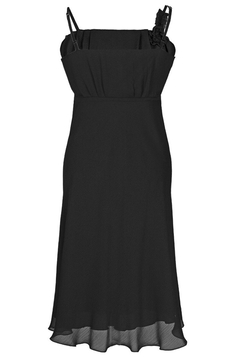 Sukienka empire. Pod biustem odcięta, dołem poszerzana. Sukienka o bardzo wdzięcznej linii trapezu. Ramiączka regulowanej długości. Góra sukienki delikatnie zaokrąglona. Na biuście efektowne zakładki, oraz ręcznie układane marszczenia, tworzące zarys kwiatów. Kwiatki zostały zrobione z tej samej tkaniny co sukienka, więc ich kolor jest identyczny. Odcięcie pod biustem zostało podkreślone wąską wypustką. Dół jest szeroki, bardzo efektownie się prezentuje, zwłaszcza podczas tańca. Z boku suwak kryty. Materiał wykorzystany do produkcji to miękki szyfon. Jest podszewka. Sukieneczka została zaprojektowana z myślą o młodych dziewczynach. Można ją założyć na wesele lub studniówkę oraz na wiele innych okazji.