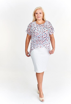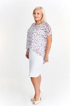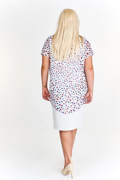 Sukienka FSU620 EKRI czerwono-granatowe kropki