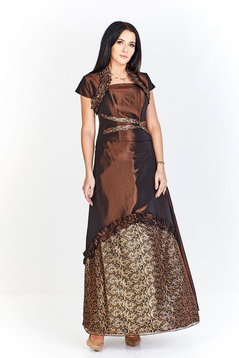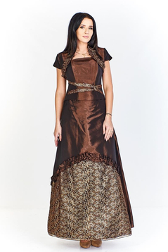 Szykuje się jakieś specjalne wydarzenie, karnawał a może wieczór panieński w określonym stylu a ty zastanawiasz się  nad wyborem kreacji na ten wyjątkowy wieczór? W tej sukni z pewnością będziesz wyglądała nietuzinkowo, bardzo oryginalnie w bogatym stylu. Dopasowana gorsetowa góra, materiał tafta charakterystycznie udekorowana koronką i falbanką sprawi że będziesz wyglądała jak królowa balu. Podkreślony biust i  ramiona. Bolerko. Dostępna w wielu wariantach kolorystycznych. Dobierz odpowiedni dla siebie i baw się tak, by wieczór należał do tych niezapomniany.