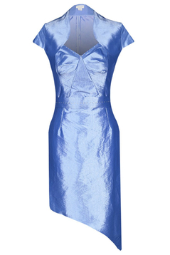 Elegancka sukienka z tafty eksponująca nogi. Jej asymetryczny fason nadaje jej seksapilu. Długość mini. Wykonana z połyskliwej tafty. Dodatkowym atutem jest bolerko wykonane z tego samego materiału. Idealna kreacja na karnawał, sylwester, studniówkę, czy imprezę w gronie znajomych.