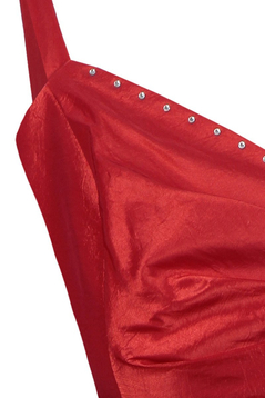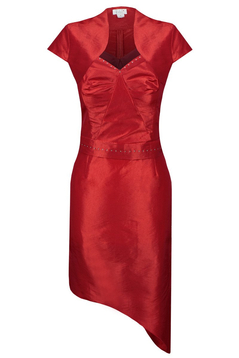 Elegancka sukienka z tafty eksponująca nogi. Jej asymetryczny fason nadaje jej seksapilu. Długość mini. Wykonana z połyskliwej tafty. Dodatkowym atutem jest bolerko wykonane z tego samego materiału. Idealna kreacja na karnawał, sylwester, studniówkę, czy imprezę w gronie znajomych.