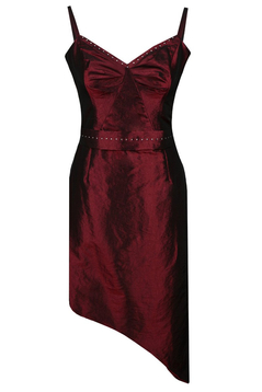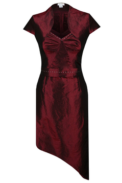 Elegancka sukienka z tafty eksponująca nogi. Jej asymetryczny fason nadaje jej seksapilu. Długość mini. Wykonana z połyskliwej tafty. Dodatkowym atutem jest bolerko wykonane z tego samego materiału. Idealna kreacja na karnawał, sylwester, studniówkę, czy imprezę w gronie znajomych.