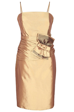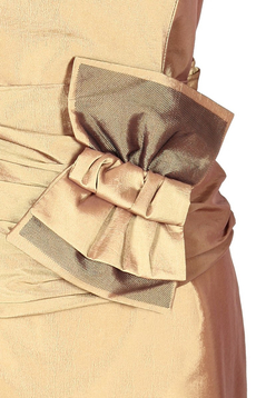 Elegancka sukienka idealna na wesela i wieczorne wyjścia. Z najwyższej jakości tafty na podszewce. Bez rękawów na cieniutkich ramiączkach. Cięcie francuskie sprawia że pięknie się układa i idealnie leży na sylwetce. Z tylu dyskretny suwak. W talii fantazyjnie uszyty drapowany pas wykończony dużą kokardą, dzięki czemu z łatwością ukryjemy brak talii lub lekko wystający brzuszek. Cenna uwaga: sukienka świetnie tuszuje mankamenty sylwetki, a jej fason sprawia że nikt nie przejdzie koło Ciebie obojętnie. Żeby całkowicie wykończyć tę wyjątkową stylizację można dokupić bolerko (FBL907)