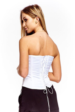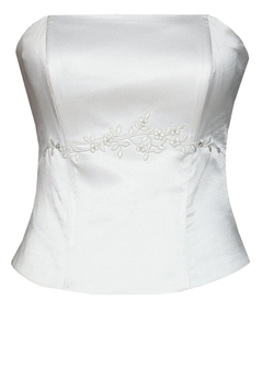 Gorset z fiszbinami wiązany z tyłu, Gorsetem podkreślisz piękne ramiona i uwydatnisz biust, wiązaniem z tyłu dobrze go dopasujesz. Materiał - połyskująca tafta z kwiatowym haftem. Dopasowana góra, podkreślona talia to klasa i styl. Gorset uzupełni twoją garderobę, można nosić go zarówno do spodni jak i spódnic.