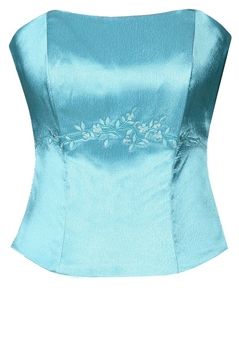 Gorset z fiszbinami wiązany z tyłu, Gorsetem podkreślisz piękne ramiona i uwydatnisz biust, wiązaniem z tyłu dobrze go dopasujesz. Materiał - połyskująca tafta z kwiatowym haftem.  Dopasowana góra, podkreślona talia  to klasa i styl. Gorset uzupełni twoją garderobę, można nosić go zarówno do spodni jak i spódnic.