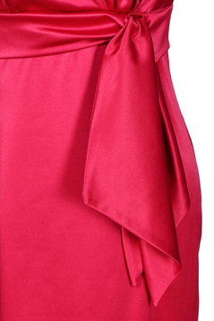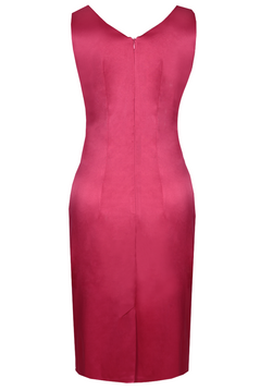 Piękna sukienka. Dekolt kopertowy. Na biuście delikatne marszczenia. Pod biustem odcięcie, oraz pasek, wiązany na lewym boku. Sukienka bez rękawa. Sukienka została uszyta z eleganckiej tkaniny - satyno-bawełny. Bez podszewki. Z tyłu na górze suwak kryty ułatwiający zakładanie. Na dole zakładany rozporek, umożliwiający swobodne chodzenie. Sukienka idealna dla kobiet ceniących świetny wygląd i komfort w użytkowaniu. Można w niej wystąpić na weselu, komunii, i wielu innych uroczystościach.