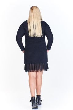Świetna propozycja na jesień/zima dla kobiet ceniących sobie oryginalność w codziennym stylu. Sukienka sweterkowa z golfem w kompozycji z halką pod spodem, gdzie efektownie dół odgrywa ciekawą rolę. Falbana, bardzo modne wykończenie wielu Twoich stylizacji. W połączeniu z odpowiednimi dodatkami możesz nadać lub podkreślić charakter. Z powodzeniem możesz do niej nosić skórzaną ramoneskę czy kamizelkę kardigan.
