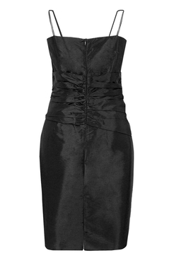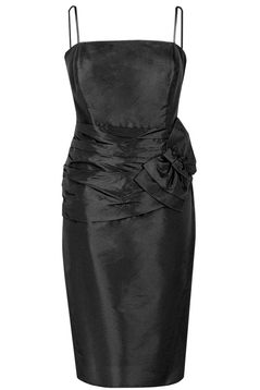 Elegancka sukienka idealna na wesela i wieczorne wyjścia. Z najwyższej jakości tafty na podszewce. Bez rękawów na cieniutkich ramiączkach. Cięcie francuskie sprawia że pięknie się układa i idealnie leży na sylwetce. Z tylu dyskretny suwak. W talii fantazyjnie uszyty drapowany pas wykończony dużą kokardą, dzięki czemu z łatwością ukryjemy brak talii lub lekko wystający brzuszek. Cenna uwaga: sukienka świetnie tuszuje mankamenty sylwetki, a jej fason sprawia że nikt nie przejdzie koło Ciebie obojętnie. Żeby całkowicie wykończyć tę wyjątkową stylizację można dokupić bolerko (FBL907)