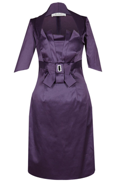 Elegancka sukienka wykonana z satyno-bawełny. W zestawie bolerko. Sukienka posiada regulowane ramiączka, kokardę z przodu wraz z klamerką. Idealna na ślub, wesele. Dostępna w kilku wersjach kolorystycznych. Odpowiednia dla kobiet w dojrzałym wieku.