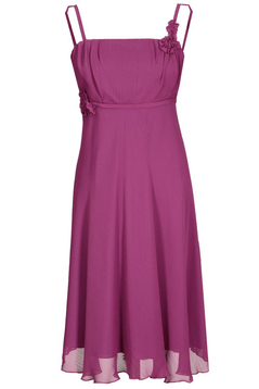 Sukienka empire. Pod biustem odcięta, dołem poszerzana. Sukienka o bardzo wdzięcznej linii trapezu. Ramiączka regulowanej długości. Góra sukienki delikatnie zaokrąglona. Na biuście efektowne zakładki, oraz ręcznie układane marszczenia, tworzące zarys kwiatów. Kwiatki zostały zrobione z tej samej tkaniny co sukienka, więc ich kolor jest identyczny. Odcięcie pod biustem zostało podkreślone wąską wypustką. Dół jest szeroki, bardzo efektownie się prezentuje, zwłaszcza podczas tańca. Z boku suwak kryty. Materiał wykorzystany do produkcji to miękki szyfon. Jest podszewka. Sukieneczka została zaprojektowana z myślą o młodych dziewczynach. Można ją założyć na wesele lub studniówkę oraz na wiele innych okazji.