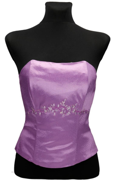 Gorset z fiszbinami wiązany z tyłu, Gorsetem podkreślisz piękne ramiona i uwydatnisz biust, wiązaniem z tyłu dobrze go dopasujesz. Materiał - połyskująca tafta z kwiatowym haftem.  Dopasowana góra, podkreślona talia  to klasa i styl. Gorset uzupełni twoją garderobę, można nosić go zarówno do spodni jak i spódnic.