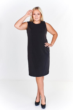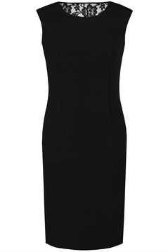 Czarna, elegancka sukienka. Dekolt okrągły. Przód wymodelowany cięciami francuskimi. Sukieneczka jest dopasowana do sylwetki. Na plecach znajduje się duża wstawka z koronki, podkreślona cienkim paskiem materiału wykończona ozdobną broszką w kształcie kokardki. Sukienka została uszyta z bardzo przyjemnego, lejącego materiału, ma elastyczną podszewkę. Na lewym boku znajduje się kryty suwak. Sukienkę polecamy na mnóstwo okazji, np. na wesele, na studniówkę, na sylwestra i wiele innych uroczystości.