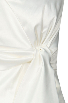 Piękna sukienka. Dekolt kopertowy. Na biuście delikatne marszczenia. Pod biustem odcięcie, oraz pasek, wiązany na lewym boku. Sukienka bez rękawa. Sukienka została uszyta z eleganckiej tkaniny - satyno-bawełny. Bez podszewki. Z tyłu na górze suwak kryty ułatwiający zakładanie. Na dole zakładany rozporek, umożliwiający swobodne chodzenie. Sukienka idealna dla kobiet ceniących świetny wygląd i komfort w użytkowaniu. Można w niej wystąpić na weselu, komunii, i wielu innych uroczystościach.