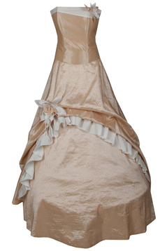 Szukasz wyjątkowej sukni na karnawał, sylwestra, wesele lub szalone stylowe panieńskie? Wyjątkowa i nietuzinkowa długa suknia. Gorsetem podkreślisz i uwydatnisz biust, wyeksponujesz piękne ramiona. Materiał- połyskująca tafta, efektownie podpięta wierzchnia warstwa dodatkowo przyozdobiona tiulem i kwiatem, kontrastowe wykończenie również nad biustem stroi całość. Sukienka posiada koło na halce dzięki czemu ładnie się układa. Dopasowana góra, podkreślona talia, dół rozkloszowany - klasa i styl. Spraw by ten wieczór był wyjątkowy a impreza niepowtarzalna. Nie zawsze trafia się nam okazja, by pozwolić sobie na niecodzienny styl i poczuć się jak królowa balu. Idealna kreacja dla pań, które lubią podkreślić swoją osobowość.