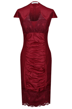 Szukasz wyjątkowej kreacji na karnawał, sylwestra, wesele. studniówkę? piękna suknia wieczorowa uszyta z delikatnego w dotyku materiału na podszewce.  Prosty i klasyczny ołówkowy fason został przełamany zdobieniami z koronki , która pięknie stroi dół sukienki jak i na biuście, całość nabiera subtelności i romantyczności. dodatkowym atutem jest kreszowany przód materiału, który nadaje jej oryginalności i elegancji. Fason dopasowany o długości mini. Idealna dla kobiet, które chcą podkreślić swoją osobowość.  Do sukienki dołączone jest bolerko w tym samym kolorze  i z tego samego materiału. Całość w połączeniu z odpowiednimi dodatkami z pewnością będzie wyglądać zjawiskowo.