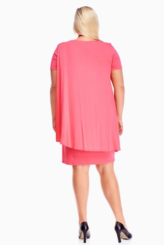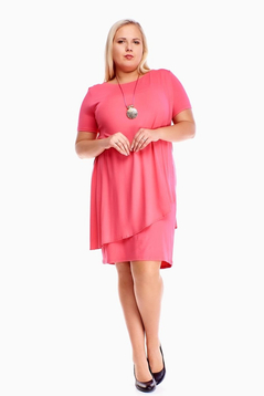Dwuwarstwowa sukienka. Spód to prosta dopasowana tkanina. Doskonale opina każdą figurę, wierzch jest luźny i asymetryczny, z lewej, krótszej strony niezszyty. Układa się bardzo efektownie, tuszuje niedoskonałości sylwetki. Bardzo wygodna, nie krępuje ruchów. Dekolt w kształcie łódki, rękaw zwykły, krótki. Sukienka uszyta została z bardzo elastycznej, lejącej dzianiny – wiskozy. Skład surowcowy: 90% wiskoza, 10% elastan. Sukienkę polecamy kobietom w każdym wieku, na co dzień. Po dobraniu odpowiednich dodatków można stworzyć bardzo udaną stylizację na bardziej uroczyste wyjścia. Jeśli chcesz wyglądać wyjątkowo i czuć się komfortowo to ta sukienka jest właśnie dla Ciebie.