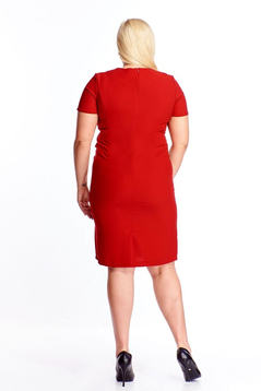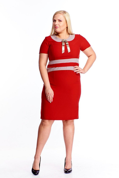Prosta elegancka sukienka uszyta z najwyższej jakości lekko rozciągliwej tkaniny. W pastelowych zestawach kolorystycznych do wyboru. Delikatny okrągły dekolt imitujący kołnierz ze srebrnym guziczkiem w formie dekoracji. Rękaw krótki. Cięcie francuskie plus odcięcie w talii sprawiają, że sylwetka wygląda na szczuplejszą i smuklejszą. Z tyłu suwak i dyskretny rozporek. Materiał jest miły w dotyku i nie ulega gnieceniu. Sukienka idealna dla dojrzałych kobiet. Idealnie kryje mankamenty figury. W zależności od dodatków sprawdzi się zarówno w dzień jak i na wieczorne wyjścia.