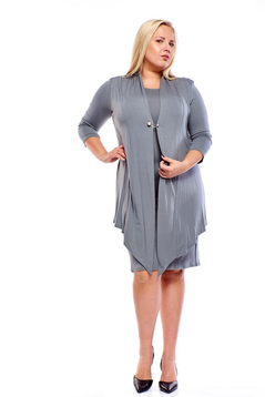 Szukasz sukienki idealnej na rozmaite okazje, spotkanie z przyjaciółmi? Chcesz przy tym zatuszować krągłe kształty, a nie lubisz banalnych fasonów? Wybierz sukienkę z dwóch warstw materiału. Górna części sukienki tworzy wrażenie, że w komplecie z nią dodano luźne, sięgające ud, bolero. Produkt wykonano z lejącej wiskozy. Wierzchni materiał wiruje wokół bioder, luźno je otula, bazowa część sukienki jest natomiast ołówkowa. To połączenie bardzo eleganckie i nieszablonowe wydobywa z figury to, co najlepsze – krągłości stają się apetyczne, co docenią puszyste panie, a te pozbawione kobiecych kształtów, "oszukają" optycznie otoczenie, zyskując je.