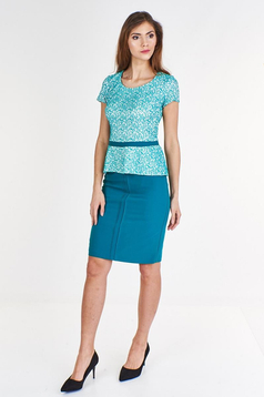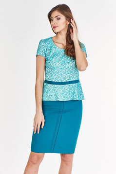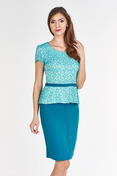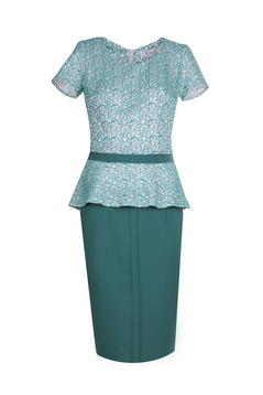 Piękna, modna garsonka. W zestawie bluzka oraz spódnica. Klasyczna spódnica na podszewce, gładka tkanina: krepa. Z przodu dwa cięcia ze stębnówkami na 0,5 cm oraz dwie zaszewki. Z tyłu na środku kryty suwak, na dole rozcięcie, po bokach 2 zaszewki. Bluzka z krótkim rękawem, baskinką oraz wszytym paskiem z materiału spódnicowego. Z przodu standardowe zaszewki. Wzór na materiale przypomina naszywane sznureczki. Z tyłu zapięcie na kryty suwak oraz zaszewki. Elegancki i kobiecy krój garsonki oraz ciekawa kolorystyka sprawia, że kobieta w każdym wieku będzie w niej wyglądać modnie i atrakcyjnie. Klasyczna spódnica z ciekawymi przeszyciami, jak i bluzka, będą się świetnie komponować z różnego rodzaju elementami garderoby i każdej stylizacji dodawać oryginalności. Istnieje możliwość zakupienia zestawu w różnych rozmiarach. Modele dostępne pod nazwami: FBZ621, FSP622