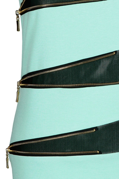 Asymetryczna sukienka. Linia dopasowana. Uszyta została z miłej w dotyku i przyjemnej dla ciała dzianiny. Dekolt okrągły. Rękaw krótki. Ozdobę stanowią wstawki na rękawach oraz w pasie. Są one uszyte z elastycznego tiulu. W pasie wstawki podkreślone metalowymi suwakami w kolorze złotym. Z tyłu suwak kryty oraz rozporek ułatwiający swobodne chodzenie. W pasie z tyłu zaszewki. Bez podszewki. Sukienka powstała z myślą o dziewczynach i kobietach w różnym wieku. Idealna na kameralne spotkania w gronie rodziny lub znajomych.