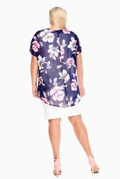 Sukienka FSU620 EKRI + GRANATOWY malinowy duży kwiaty