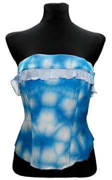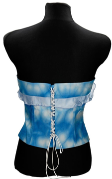 Gorset z fiszbinami wiązany z tyłu, Z przodu i z tyłu kontrastowa falbanka oraz wiązanie. Gorsetem podkreślisz piękne ramiona i uwydatnisz biust, wiązaniem z tyłu dobrze go dopasujesz. Dopasowana góra, podkreślona talia to klasa i styl. Gorset uzupełni twoją garderobę, można nosić go zarówno do spodni jak i spódnic.