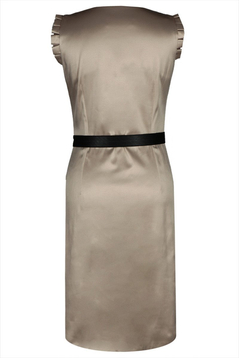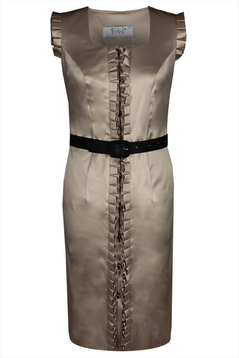 Prosta sukienka, z najwyższej jakości satyny bawełnianej. Przód sukienki to dekolt w kształcie caro. Rękawki wykończone malutkimi kontrafałdami. Cięcia francuskie przebiegające do linii bioder wysmuklają sylwetkę, a pasek w komplecie podkreśla talię. Sukienka od góry do samego dołu odpina się na małe guziczki, ukryte pod fantazyjnymi kontrafałdami. Dedykowana eleganckim kobietom, niezależnie od wieku. Idealna zarówno na komunię, imieniny, wesele jak i na mniej oficjalne wyjścia.