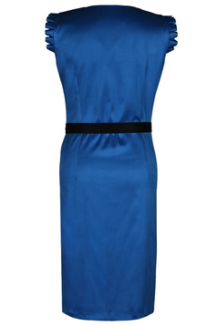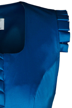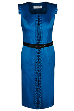 Prosta sukienka, z najwyższej jakości satyny bawełnianej. Przód sukienki to dekolt w kształcie caro. Rękawki wykończone malutkimi kontrafałdami. Cięcia francuskie przebiegające do linii bioder wysmuklają sylwetkę, a pasek w komplecie podkreśla talię. Sukienka od góry do samego dołu odpina się na małe guziczki, ukryte pod fantazyjnymi kontrafałdami. Dedykowana eleganckim kobietom, niezależnie od wieku. Idealna zarówno na komunię, imieniny, wesele jak i na mniej oficjalne wyjścia.