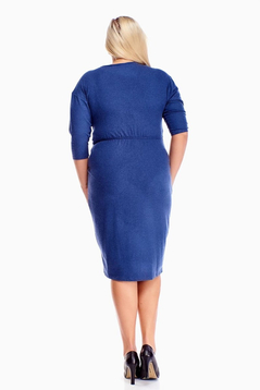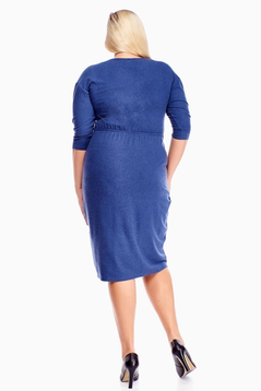 Prosta, jesienna sukienka. Uszyta została z elastycznej, bardzo miłej w dotyku dzianiny-wiskozy. Dekolt serek. Na przodzie w pasie ozdobna klamerka i szerokie zakładki, rozchodzące się na dół oraz do góry. W sukience zmieszczą się również bardziej rozbudowane biodra. Po bokach niewielkie kieszenie. Z tyłu w pasie gumka, podkreślająca talię. Dół oraz rękawy wykończone ściegiem elastycznym. Bez podszewki, bez suwaka. Sukienka codzienna, idealna do pracy biurowej.