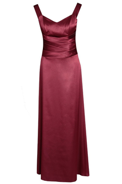 Maxi sukienka. Materiał zasadniczy to satyna z delikatnym połyskiem. Dekolt w kształcie serca. Na przodzie w miejscu talii zostały naszyte skośne paski. Ramiączka szerokie. Cięcia piersiowe usztywnione fiszbinami. Zapinana z boku na suwak kryty. Dół rozkloszowany. Sukienka występuje w bardzo wielu wersjach kolorystycznych. Sukienkę polecamy na wesele, bal karnawałowy i wiele innych okazji.