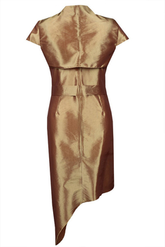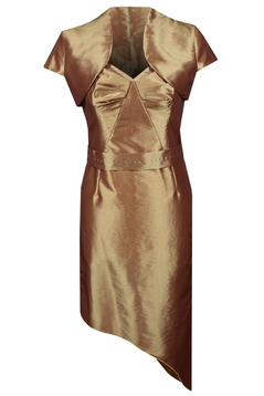 Elegancka sukienka z tafty eksponująca nogi. Jej asymetryczny fason nadaje jej seksapilu. Długość mini. Wykonana z połyskliwej tafty. Dodatkowym atutem jest bolerko wykonane z tego samego materiału. Idealna kreacja na karnawał, sylwester, studniówkę, czy imprezę w gronie znajomych.