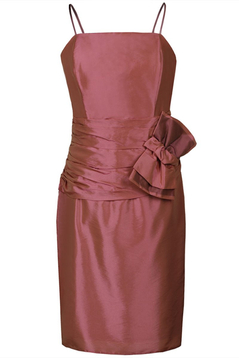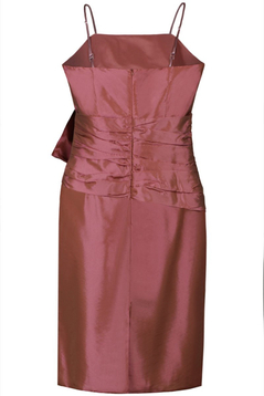 Elegancka sukienka idealna na wesela i wieczorne wyjścia. Z najwyższej jakości tafty na podszewce. Bez rękawów na cieniutkich ramiączkach. Cięcie francuskie sprawia że pięknie się układa i idealnie leży na sylwetce. Z tylu dyskretny suwak. W talii fantazyjnie uszyty drapowany pas wykończony dużą kokardą, dzięki czemu z łatwością ukryjemy brak talii lub lekko wystający brzuszek. Cenna uwaga: sukienka świetnie tuszuje mankamenty sylwetki, a jej fason sprawia że nikt nie przejdzie koło Ciebie obojętnie. Żeby całkowicie wykończyć tę wyjątkową stylizację można dokupić bolerko (FBL907)