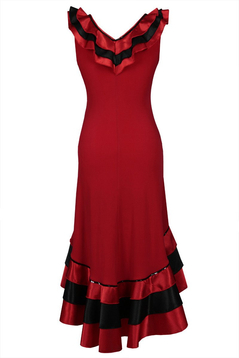 Niezwykle oryginalna sukienka idealna na wesele. Dostępna w dziesięciu zestawach kolorystycznych. Uszyta z lekko ciągliwej tkaniny, miłej w dotyku. Dekolt w serek obszyty cekinami, dodatkowo wykończony trzema fantazyjnymi falbankami. Takie same falbany zdobią dół sukienki, dzięki temu nabiera ona romantycznego charakteru. Z tyłu również delikatny dekolt w serek. Sukienka lekko opina ciało podkreślając atuty kobiecej sylwetki, dzięki czemu nikt nie przejdzie obok Ciebie obojętnie.