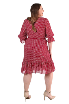 Na dole sukienki szeroka falbana. Rękawy oraz dół wykończony mereżką.