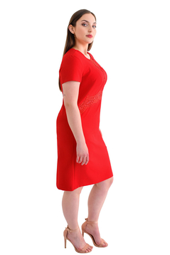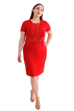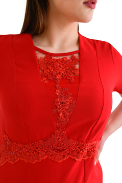 Elegancka, dopasowana sukienka z głębokim dekoltem z gipiurą, uwydatnia atuty, ale również ukrywa mankamenty.