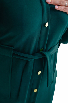 Sukienka posiada pasek który może być swobodnie umieszczony w szlufkach, lub zawiązany aby podkreślić talię, dodatkowo są naszywane kieszenie. Bez rozpięcia i podszewki.