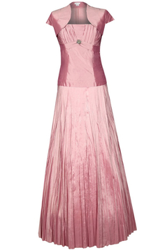Przepiękna balowa sukienka maxi na halce ze stelażem. Góra gorsetowa cudownie modeluje sylwetkę a zdobienia w formie kreszowania nadają jej wieczorowego charakteru. Dodatkowym atutem jest bolerko w komplecie, wykonane z tego samego materiału, które zakryje ramiona na bardziej oficjalnych wyjściach. Kreacja idealna na zbliżający się Sylwester czy przyjęcie weselne.