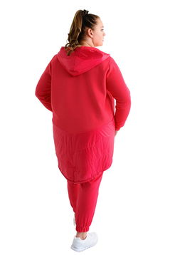 Sportowa bluzo- kurtka idealna do codziennej stylizacji. Została uszyta z wysokiej jakości łączonych materiałów. Góra to dzianina dresówka której spód jest drapany tzw. meszek natomiast dół uszyty jest z pikowanego lekko połyskującego materiału. Dół rękawów zakończony jest ściągaczami. Bluza została ozdobiona naszywką na rękawie. Doskonale sprawdzi się zarówno podczas chłodniejszych, jak i cieplejszych dni. Będzie idealna do pracy, szkoły, na zakupy, spacer ze znajomymi czy spotkanie .