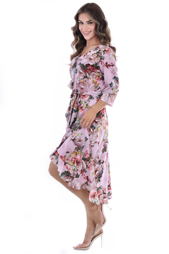 Sukienka jest uszyta z delikatnej tkaniny przez co ładnie układa się na figurze i nie krępuje ruchów.