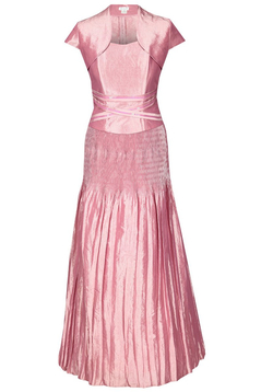 Przepiękna balowa sukienka maxi na halce ze stelażem. Góra gorsetowa cudownie modeluje sylwetkę a zdobienia w formie kreszowania nadają jej wieczorowego charakteru. Dodatkowym atutem jest bolerko w komplecie, wykonane z tego samego materiału, które zakryje ramiona na bardziej oficjalnych wyjściach. Kreacja idealna na zbliżający się Sylwester czy przyjęcie weselne.