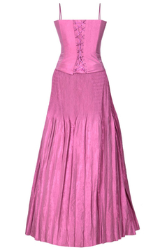 Przepiękna balowa sukienka maxi na halce ze stelażem. Góra gorsetowa cudownie modeluje sylwetkę a zdobienia w formie kreszowania nadają jej wieczorowego charakteru. Dodatkowym atutem jest bolerko w komplecie, wykonane z tego samego materiału, które zakryje ramiona na bardziej oficjalnych wyjściach. Kreacja idealna na zbliżający się Sylwester czy przyjęcie weselne.