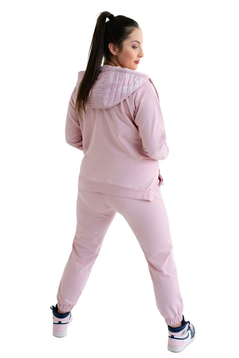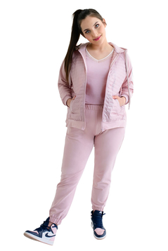 Spodnie posiadają w pasie i na dole nogawek szeroką zmarszczoną gumę, po bokach w szwie są ukryte kieszenie.
