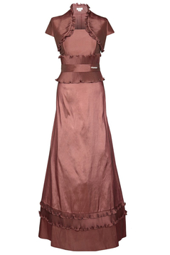 Przepiękna balowa sukienka maxi na halce ze stelażem. Góra gorsetowa cudownie modeluje sylwetkę a zdobienia w formie kreszowania nadają jej wieczorowego charakteru. Dodatkowym atutem jest bolerko w komplecie, wykonane z tego samego materiału, które zakryje ramiona na bardziej oficjalnych wyjściach. Kreacja idealna na zbliżający się Sylwester czy przyjęcie weselne.