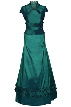 Przepiękna balowa sukienka maxi na halce ze stelażem. Góra gorsetowa cudownie modeluje sylwetkę a zdobienia w formie kreszowania nadają jej wieczorowego charakteru. Dodatkowym atutem jest bolerko w komplecie, wykonane z tego samego materiału, które zakryje ramiona na bardziej oficjalnych wyjściach. Kreacja idealna na zbliżający się Sylwester czy przyjęcie weselne.