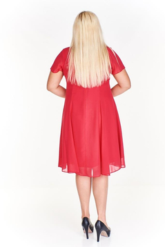 Piękna, niesamowicie kobieca sukienka. Z połączenia dwóch materiałów - spodnia tkanina a na niej transparentny szyfon, który nadaje kreacji całą skromną elegancję. Rozkloszowany fason, długość w kolanko i bucik na obcasie to sam wdzięk i klasa. Wybierając jasne/pastelowe kolory stworzysz stylizację na komunię lub chrzciny. Natomiast ciemne kolory w zestawieniu z biżuterią lub ciekawymi błyskotkami z pewnością olśniewająco będziesz wyglądać na weselu lub innej wieczorowej imprezie.  Do tego dobierz elegancki żakiet bądź szal. A może szukasz coś na popołudniowe spotkanie z przyjaciółką? wybierz nasz model w groszki, włóż letni kapelusz i ciesz się aurą wiosny/lata. Występuje w palecie wielu kolorów i wzorów. Idealna na wiosenne i letnie dni. Polecamy kobietom w różnym wieku.