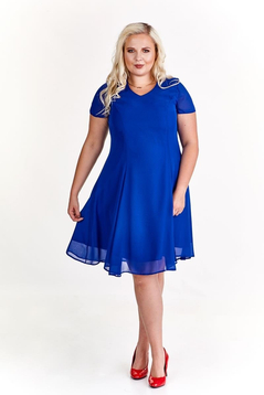 Piękna, niesamowicie kobieca sukienka. Z połączenia dwóch materiałów - spodnia tkanina a na niej transparentny szyfon, który nadaje kreacji całą skromną elegancję. Rozkloszowany fason, długość w kolanko i bucik na obcasie to sam wdzięk i klasa. Wybierając jasne/pastelowe kolory stworzysz stylizację na komunię lub chrzciny. Natomiast ciemne kolory w zestawieniu z biżuterią lub ciekawymi błyskotkami z pewnością olśniewająco będziesz wyglądać na weselu lub innej wieczorowej imprezie. Do tego dobierz elegancki żakiet bądź szal. A może szukasz coś na popołudniowe spotkanie z przyjaciółką? wybierz nasz model w groszki, włóż letni kapelusz i ciesz się aurą wiosny/lata. Występuje w palecie wielu kolorów i wzorów. Idealna na wiosenne i letnie dni. Polecamy kobietom w różnym wieku.