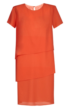 Sukienka została uszyta z cienkiego zwiewnego materiału. Jest wykończona podszewką. Dekolt okrągły. Sukieneczka zapinana jest z tyłu na mały guziczek. Skośne falbany zarówno z przodu jak i z tyłu optycznie wyszczuplają sylwetkę. Rękaw krótki. Sukienka jest luźna, nie posiada suwaka. Sukienka idealna na uroczyste spotkania w gronie rodziny i przyjaciół.