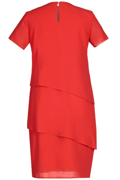 Sukienka została uszyta z cienkiego zwiewnego materiału. Jest wykończona podszewką. Dekolt okrągły. Sukieneczka zapinana jest z tyłu na mały guziczek. Skośne falbany zarówno z przodu jak i z tyłu optycznie wyszczuplają sylwetkę. Rękaw krótki. Sukienka jest luźna, nie posiada suwaka. Sukienka idealna na uroczyste spotkania w gronie rodziny i przyjaciół.